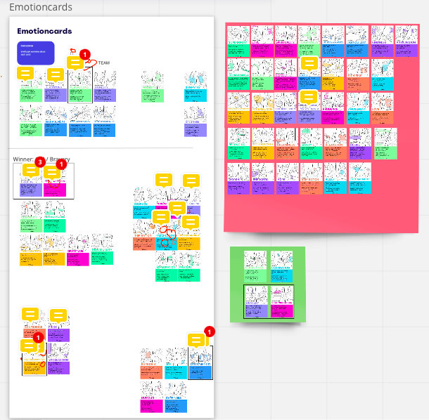 the team formed 5 groups to sort the emotion cards into fields of interest in Rise Up