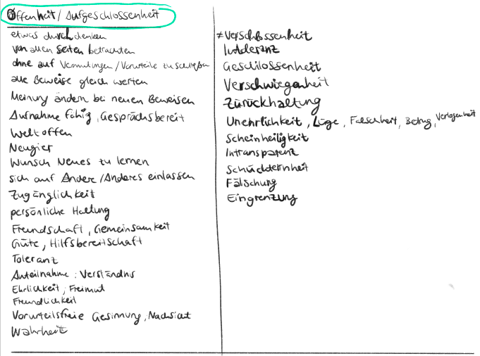 After the field and the background of Rise Up got illuminated in the workshop the next step is to define the findings. Each of the four emotioncards needs a foolproof checklist to finalise its meaning and the usage of it. Together with the written definition (photo on top: left are synonyms and on the right are antonyms) are scribbles visualising the meaning.