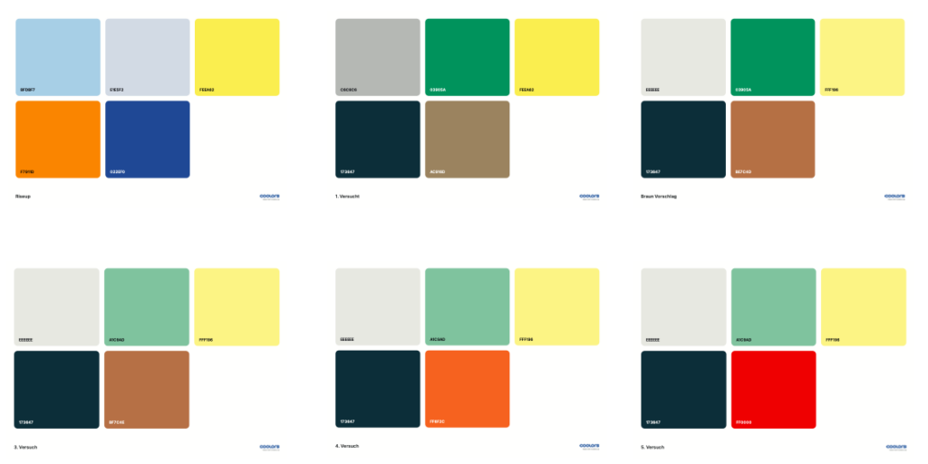 This step contained various meetings with the design team. The basic colours were already set before. Focus now to define the palette – with its shades.